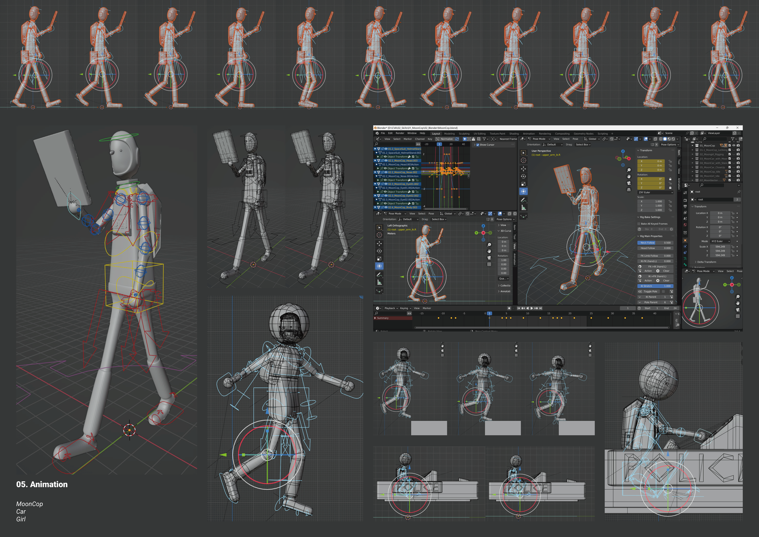 Using Unreal Engine 5, I recreated a one-minute short animation of a section from the graphic novel Mooncop. All characters were modeled, rigged, and animated in Blender.