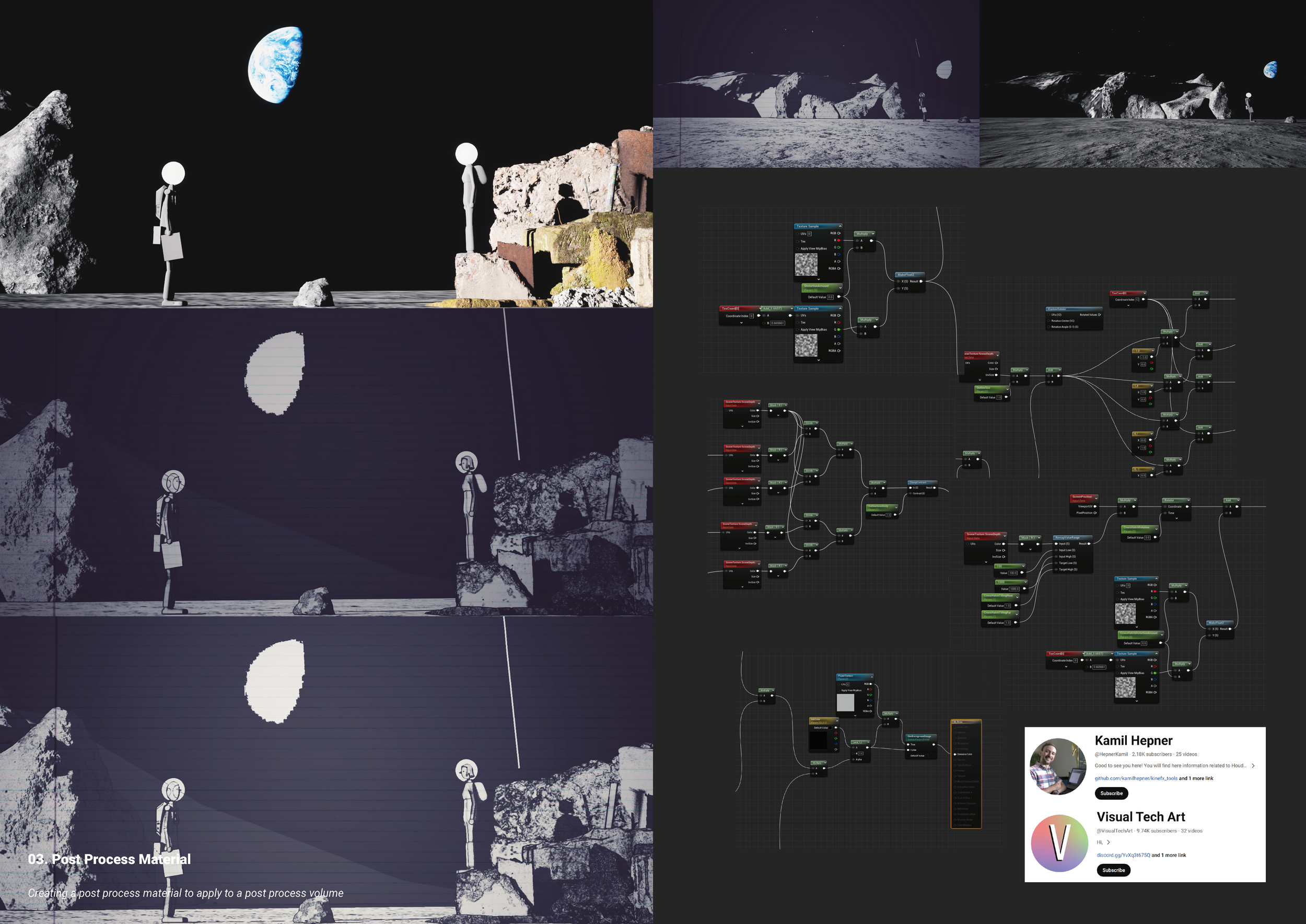 Creating the original graphic novel painted style post-process effect in Unreal Engine 5 (UE5) involves applying custom shaders and materials that mimic the hand-painted, stylized aesthetic of graphic novels. By adjusting lighting, edge detection, and color grading, artists can achieve a dynamic, illustrated look, bringing scenes to life with bold strokes, high contrast, and vivid colors, enhancing the comic-like visual narrative.