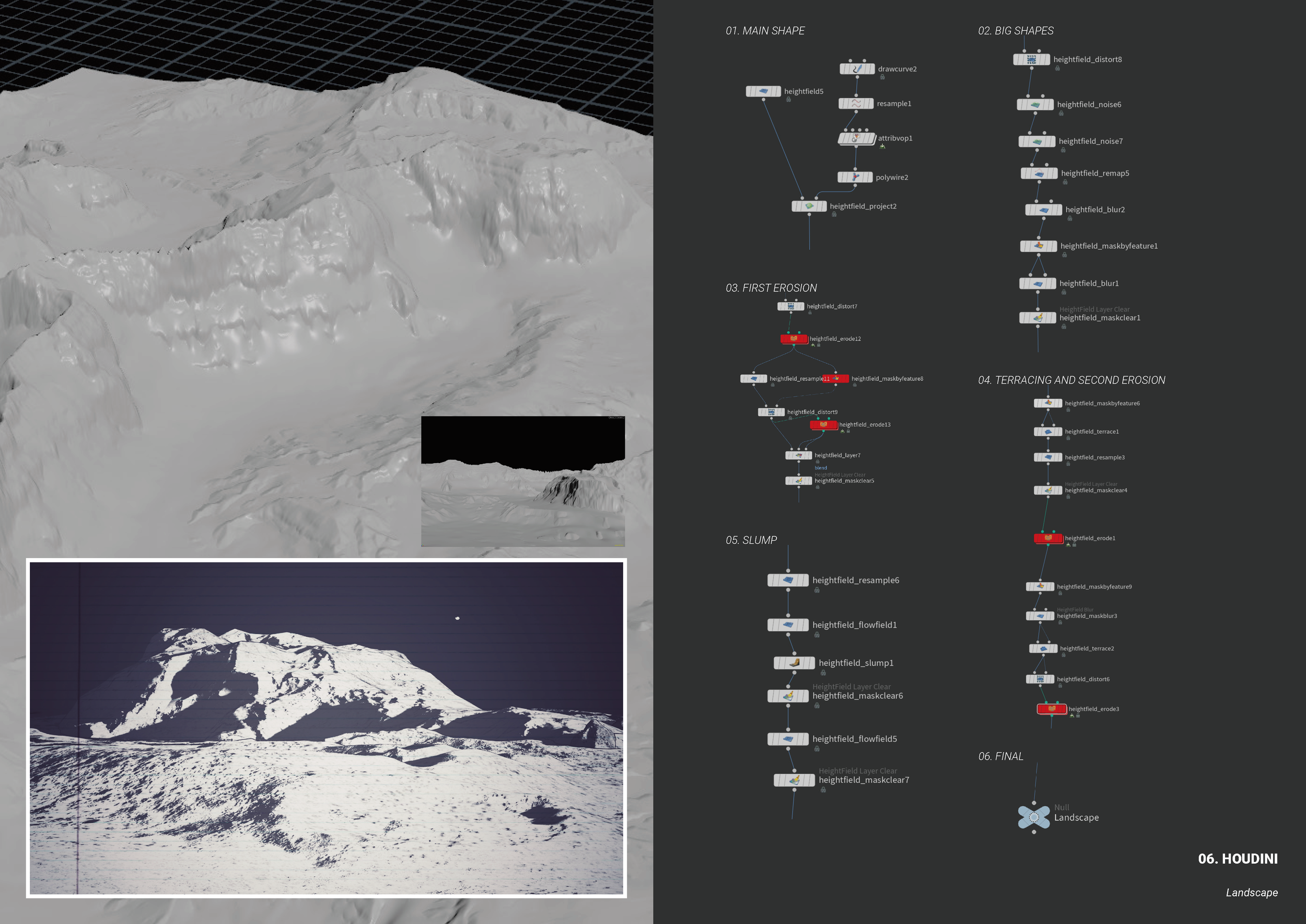 This production pipeline combines various tools for a streamlined workflow. Blender handles modeling, rigging, and animation, creating dynamic 3D assets. Houdini generates procedural landscapes, producing vast, detailed environments with ease. In Unreal Engine 5 (UE5), rendering brings everything together, while post-process effects add stylistic enhancements, such as graphic novel-inspired visuals. Lastly, Adobe Premiere (PR) is used for editing and sound integration, ensuring a polished final output with smooth transitions, timing, and audio synchronization for a cohesive project.